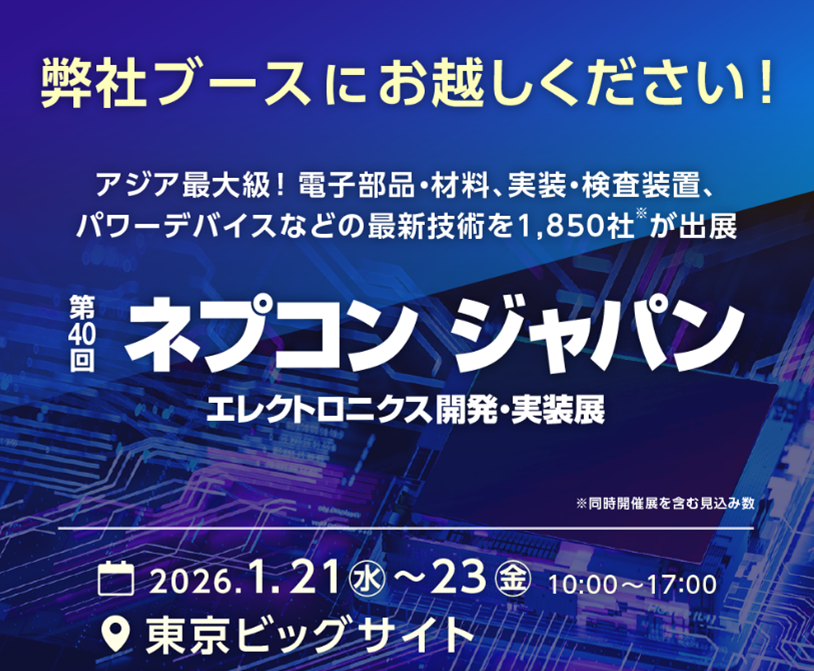 「第40回ネプコン ジャパン 第27回電子部品・材料EXPO」に出展します【1/21-23】